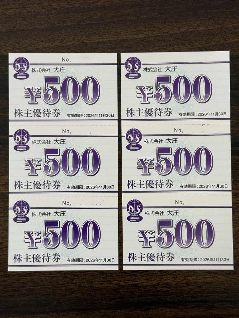 大庄の株主優待は特に制限がないので、一度に全部使い切ることも可能ですし、小分けで使うことも可能です。特に500円券なので、ランチで使いやすくて良いですよね😆またほとんどのブランドで使用できるのも良いです。ランチなどでよく行かれるのでしたら、100株保有していて損はないと思います。
