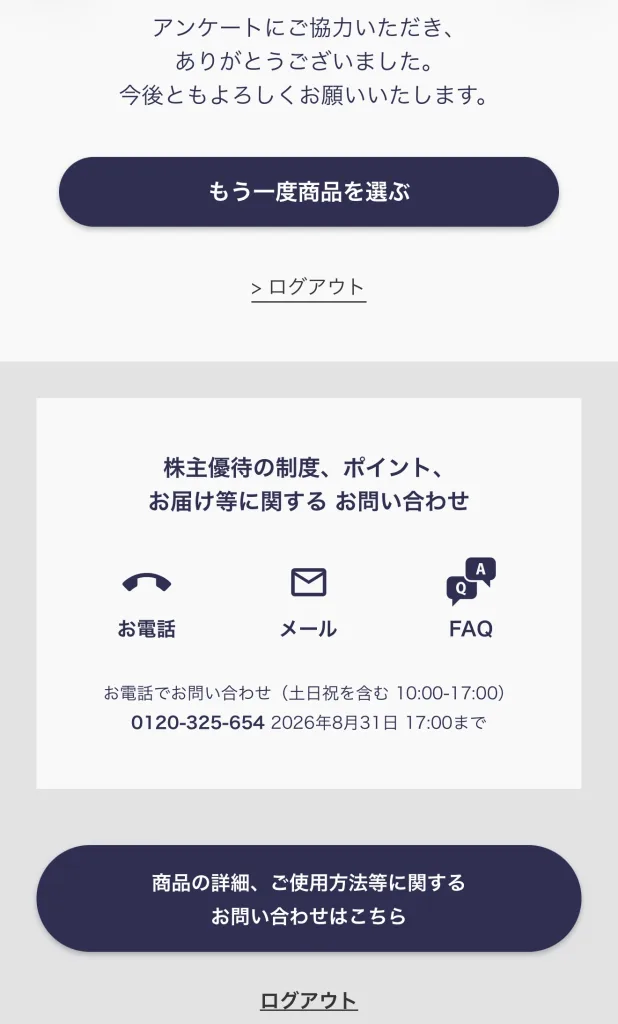あとは簡単なアンケートを答えます。中年のおっさんの回答なんか役に立つんですかね🤣