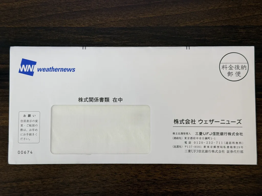 天気予報で有名なウェザーニューズから株主優待が届きました✉️