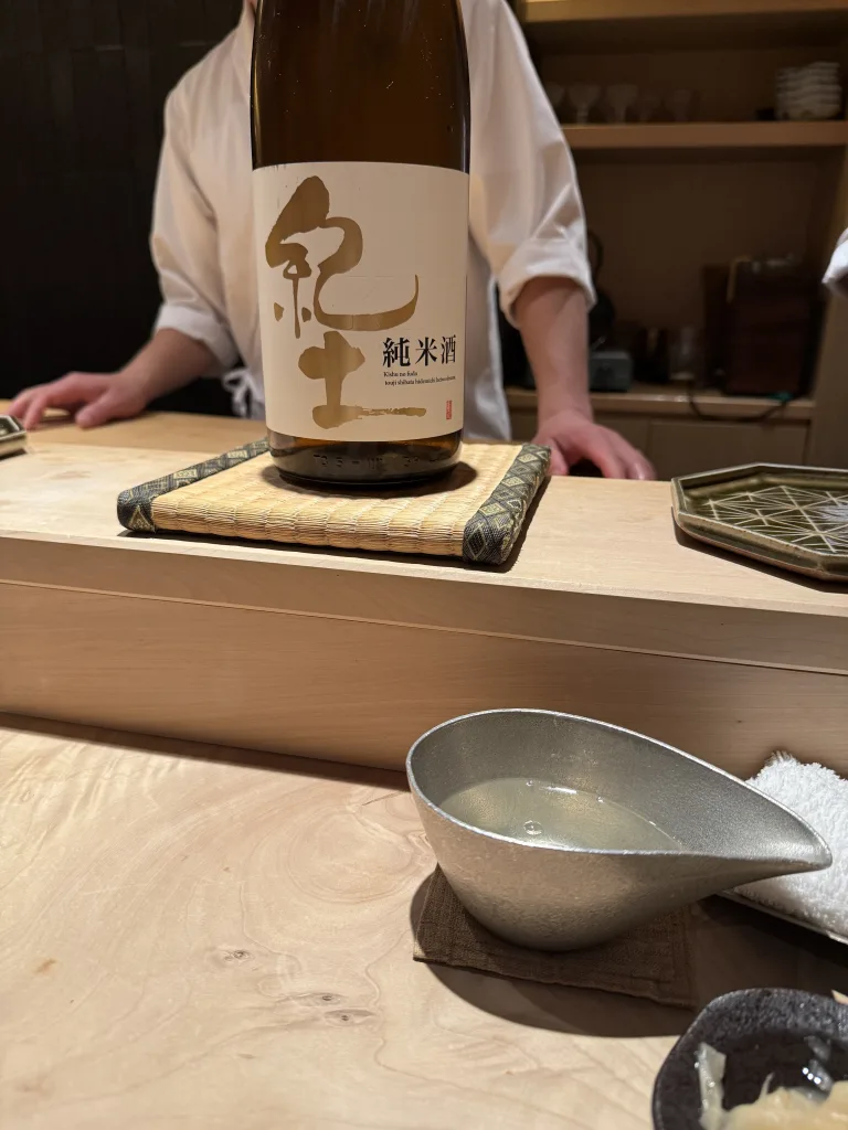 お酒のおかわりです。お米の香りがいいお酒をお願いしたら「紀土」になりました🍶本当に香りがいいですね😋